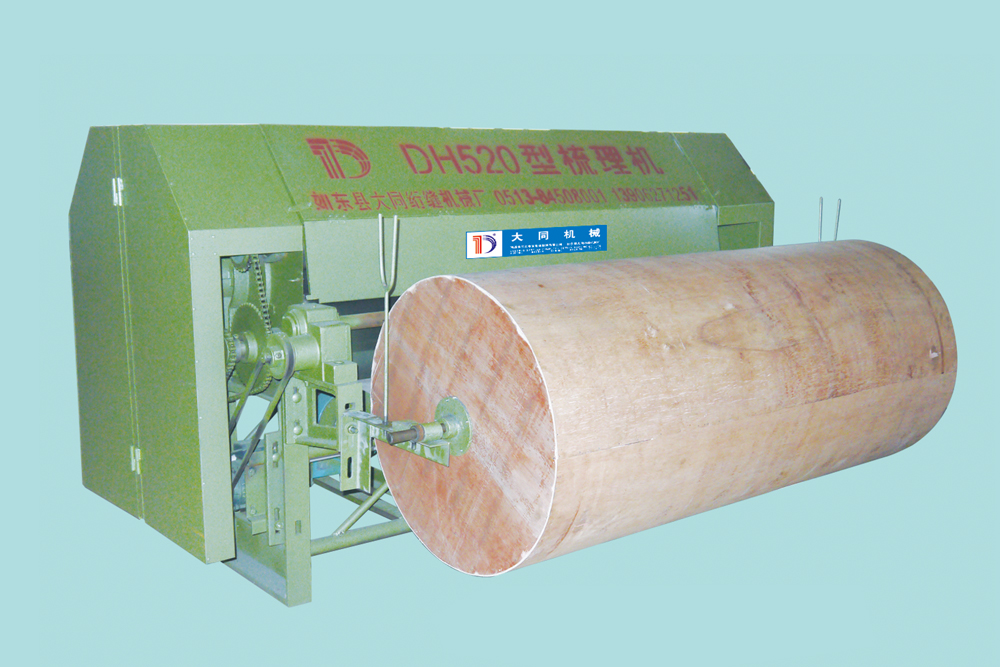 適應于人造纖維7D~15Dx38~65mm梳理。羊毛及舊毛衣破碎后進行梳理成型,棉花及舊被褥梳理再利用。單錫林高速梳理,單道夫出棉,產(chǎn)量高;采用斬刀剝棉。